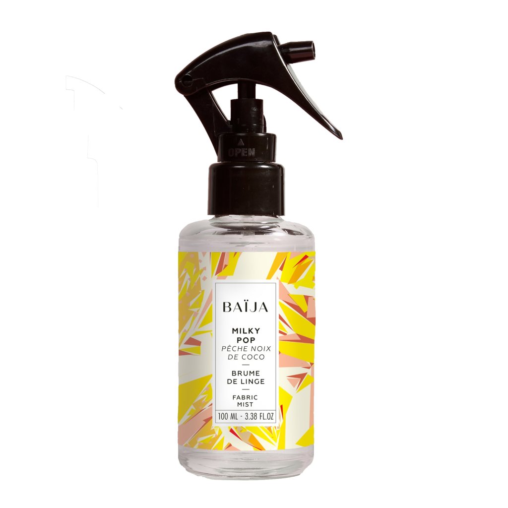 Lněná vůně MILKY POP od značky BAÏJA s ovocnými, slunečnými a uklidňujícími tóny evokuje letní mléčný koktejl, něhu dětského pokoje, objetí měkkého polštáře i jemné teplo deky, které jemně provoní vaše ložní prádlo.